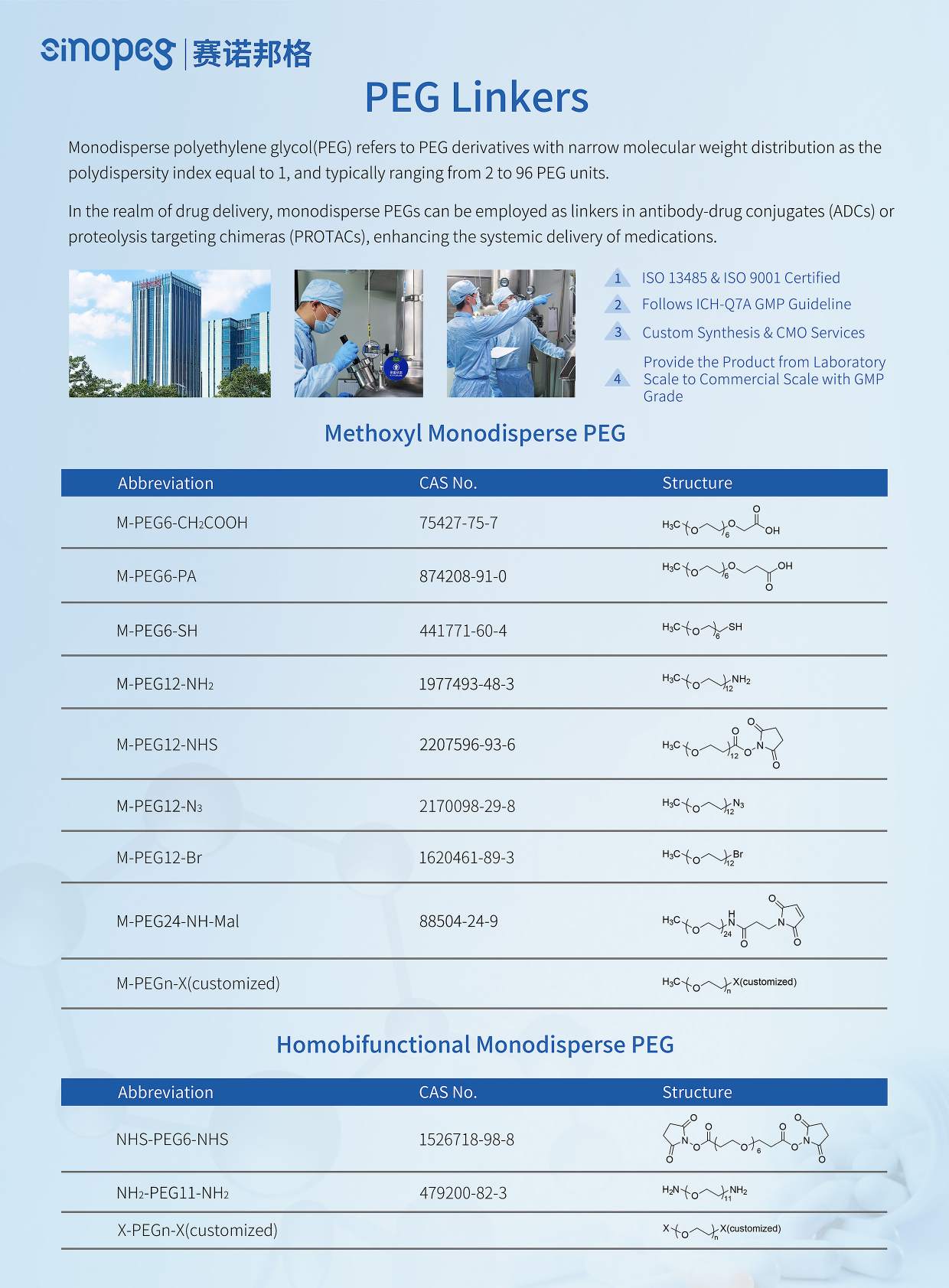 Sinopeg は、低分子 PEG (さまざまな官能基オプションを提供) の豊富な在庫を誇っています。